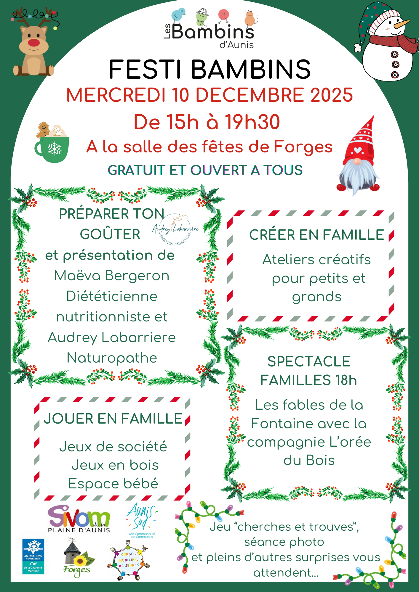 Située à Forges (17), l’association parentale Les Bambins d’Aunis, propose des modes d’accueil de la Petite Enfance, de l’Enfance et de leur famille.
